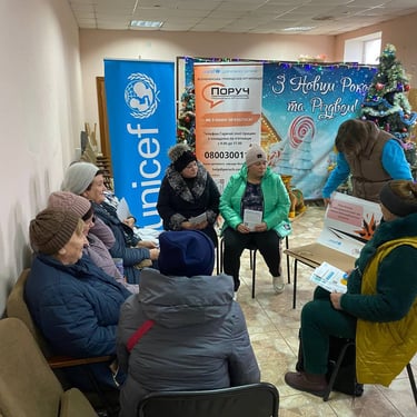 Наші фахівці мобільних бригад та хабів проводять інформаційні сесії для мешканців прифронтових територій (дітей та дорослих) про ризики, пов'язані з вибухонебезпечними залишками війни та попередження нещасних випадків на території, засміченій вибухонебезпечними предметами.